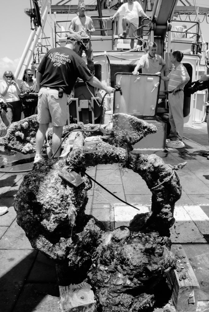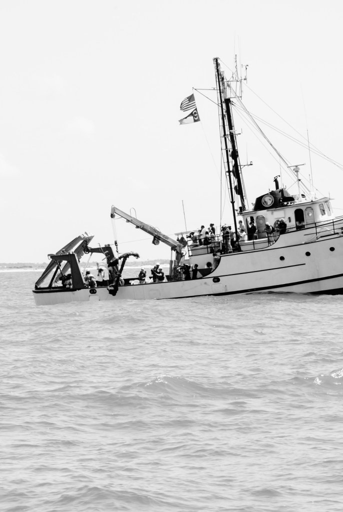 The pirates aboard the Queen Anne’s Revenge held their collective breath, trying to skate through the shallow waters of Topsail Inlet. It’s tough sailing, even now, even for skillful sailors. Then came the sound they were waiting for, but hoping not to hear: The scraping of wood against sand. They were stuck, solidly wedged into a sandbar. After waving their comrades back to help them, soon two ships were lodged in Topsail Inlet, creaking and groaning as water filled their bows. Here’s the thing about being grounded in a large ship: There are not sails, oars, or manpower enough to remove them before the sea claims them. The crew — and the loot — were quickly unloaded.