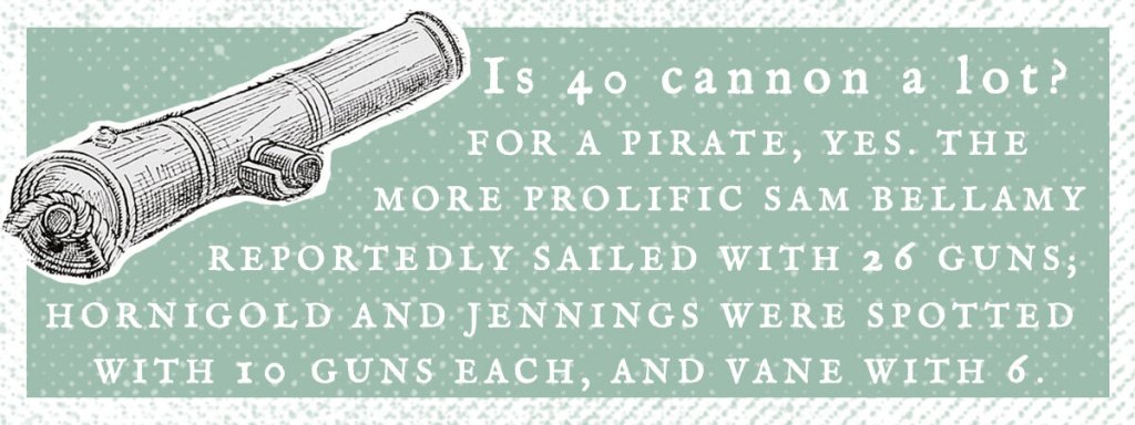 40 cannons: Capt. Ellis. Brand to Josiah Burchett, 4 July 1718. Included in letter from Josiah Burchett to Lords of the Treasury, written 11/26/1719. NC State Archives, T1/223 / ER 16-30